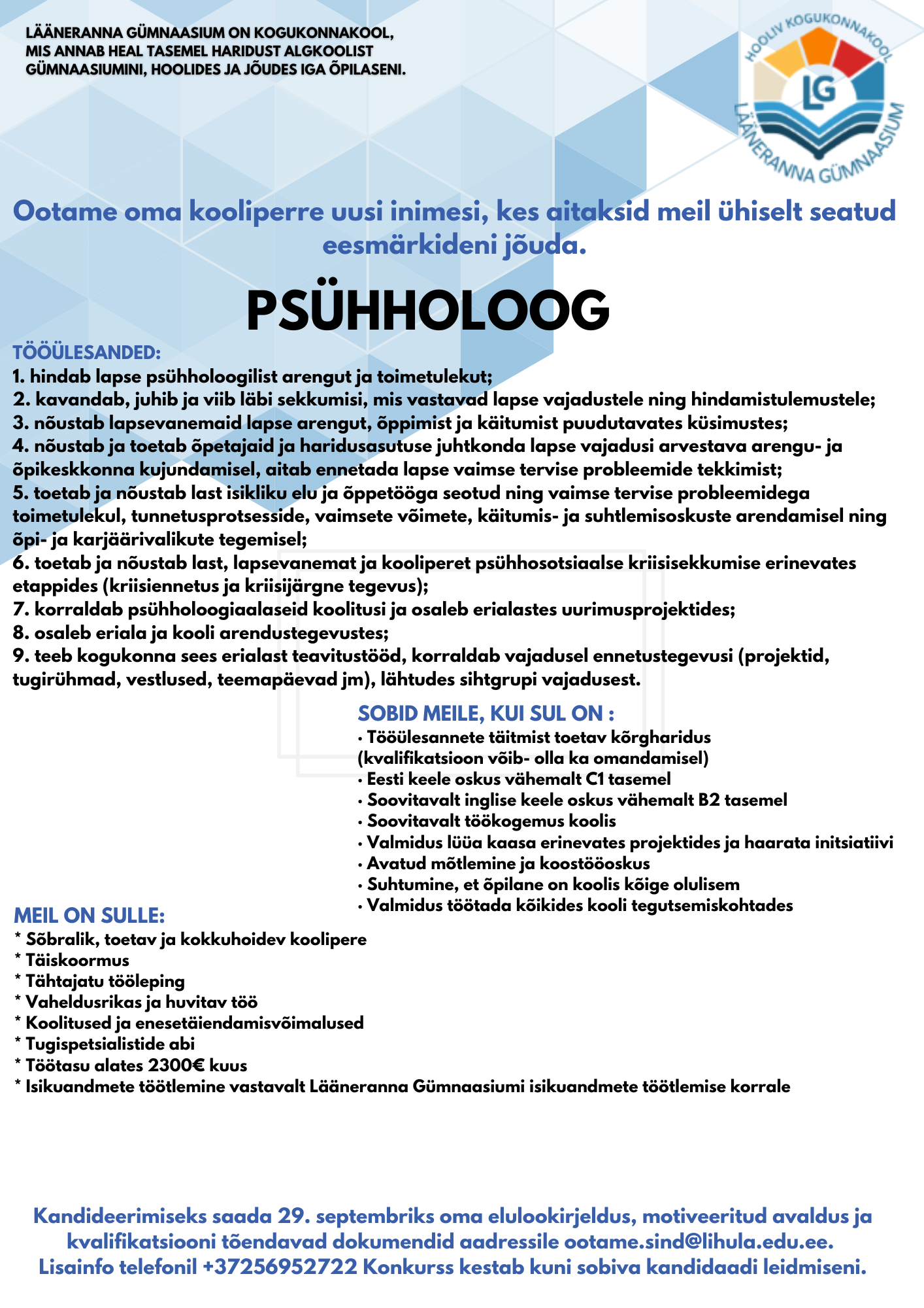 sept.152025 Jaga postitust Share on FacebookShare on Facebook Share on XShare on X Post navigationEelminePrevious post:Maal elamise päevJärgmineNext post:Vana koolimaja lõpp ja uue algus fotodel: suur pildigaleriiSeotud postitusedLastevanemate üldkoosolekseptember 25, 2025Maal elamise päevseptember 15, 2025Õpikute jagamine Lihulasaugust 19, 2025Tere, uus kooliaasta!august 17, 2025Tule tööle Lääneranna Gümnaasiumissejuuli 14, 2025Lapsevanemate üldkoosolek: vaade tulevikkumai 25, 2025